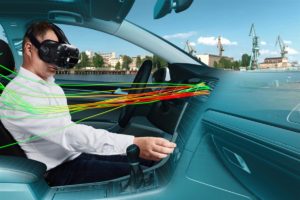 assolata. Niente di tutto ciò è reale, però, neanche la Golf. Questo modello, infatti, debutterà su strada solo tra qualche anno. Ciononostante, Frank Ostermann e Mathias Möhring siedono già a bordo dell’auto. Ostermann inserisce una destinazione nel navigatore, mentre Möhring regola l’aria condizionata. Questa Golf virtuale e il paesaggio che la circonda sono frutto di un innovativo lavoro di squadra. L’IT Virtual Engineering Lab del Gruppo Volkswagen e il Dipartimento di Sviluppo Tecnico della marca Volkswagen avevano un obiettivo comune: rivoluzionare lo sviluppo dei nuovi modelli. Ce l’hanno fatta: la prossima Golf è già in fase di sviluppo virtuale.