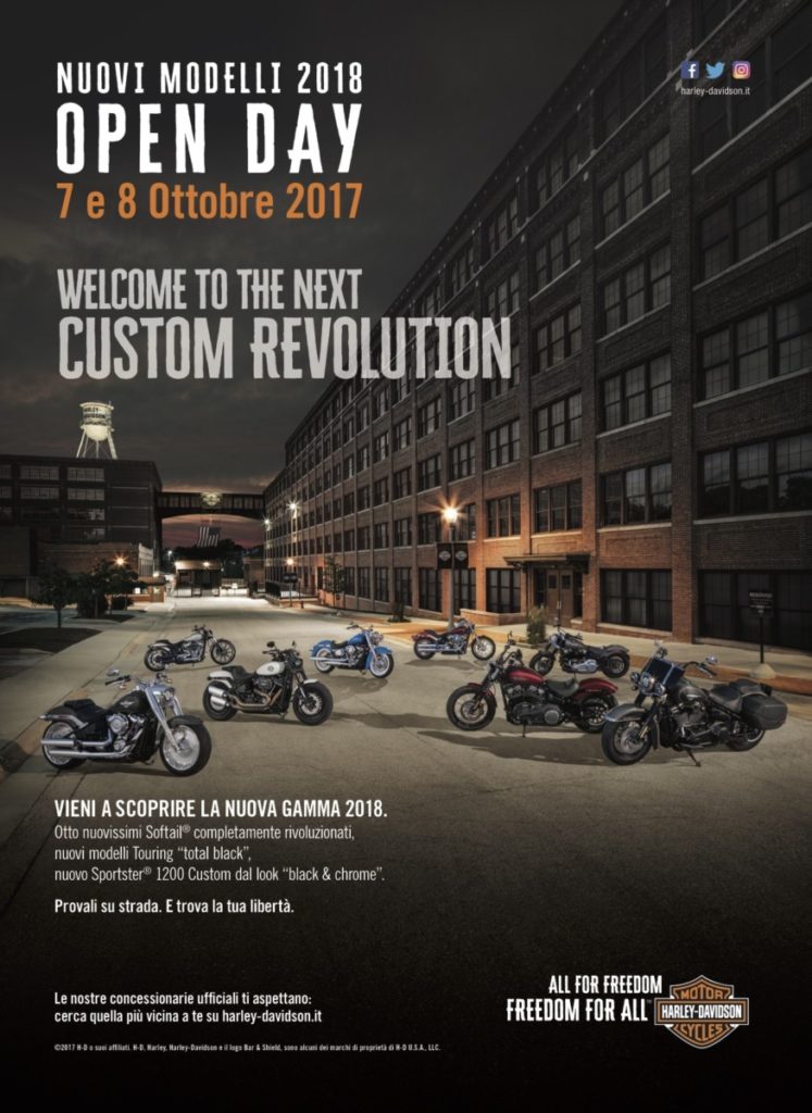 Il lancio #Harley-Davidson più grande e articolato di tutti i tempi, che celebra il 115° anniversario del brand, diventa realtà per tutti gli appassionati e le moto sono pronte per essere toccate con mano. Ecco dunque, dopo uno degli annunci più rivoluzionari della storia del marchio, che tutte le concessionarie della rete Harley in Italia si preparano al tradizionale weekend Open Day, il porte aperte nel quale gli appassionati del marchio possono scoprire tutte le novità relative alla prossima stagione. L’appuntamento presso le concessionarie della rete ufficiale Harley-Davidson in Italia è fissato dunque per il prossimo weekend, sabato 7 e domenica 8 ottobre.