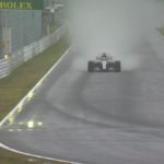 La Mercedes di Lewis Hamilton davanti nelle FP2 a Suzuka, in un venerdì pomeriggio caratterizzato dal diluvio, con solo cinque piloti a fare un tempo