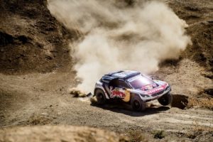 km/h la velocità massima consentita in una zona a velocità limitata della speciale. Si sono posizionati all’11° posto in classifica. I compagni di squadra del DreamTeam Carlos Sainz e Lucas Cruz hanno ottenuto il 4° posto, in occasione del loro ritorno alle gare dopo nove mesi di assenza. Le due PEUGEOT 3008DKR hanno raggiunto il traguardo senza accusare il minimo problema. I primi 10 classificati del Prologo hanno potuto scegliere la loro posizione di partenza per la prima tappa di oggi: una decisione importante e strategica. Sainz e Loeb si sono posizionati rispettivamente 1° e 11°.