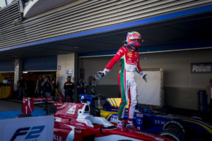 Leclerc had a lapped Sean Gelael on fresh tyres between himself and Rowland as they toured around, and when the race went live on lap 35 the Monegasque driver eased away at the front of the field with the Briton slicing by the Indonesian to chase his rival for the closing laps. Fuoco was soon charging towards them, easily passing Sette Camara, Latifi and Ghiotto to put himself on the podium. On the final lap Leclerc tyres were spent: he slowed dramatically, bunching up his pursuers who also had to content with a battle between Gelael and Louis Deletraz as they looked in vain for a line past Leclerc, who had just enough left to lead the group over the line as he claimed his 6th victory of the season, and with it the 2017 title. Rowland just held out Fuoco for P2, with Latifi breathing down their necks in 4th, while Markelov was a fine P5 after a first lap tangle ahead of Jordan King, who made the alternate strategy work for him after mugging Ghiotto on spent tyres late in the race. Alex Palou was a splendid 8th on his debut, picking up the reverse pole for tomorrow’s sprint race, ahead of a strong drive by Nabil Jeffri for P9 and a distraught Sette Camara who also ran out of rubber in 10th.