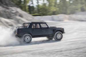 Raggiungendo velocità superiori ai 200 km/h, la LM002 era stata equipaggiata con pneumatici Pirelli Scorpion progettati ad hoc, che permettevano di affrontare superfici cedevoli come la sabbia, offrendo allo stesso tempo un’ottima resistenza in climi caldi. La produzione delle carrozzerie iniziò presso un’azienda di Bilbao (Spagna). Gli elementi semi-assemblati venivano poi inviati a Sant’Agata Bolognese per essere completati con motore, componenti meccaniche e finiture, ed essere collaudati e consegnati. Il tocco finale era dato dai lussuosi interni, realizzati sulla base delle specifiche esigenze del cliente.