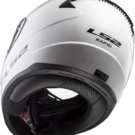 mentre le imbottiture laterali sono fissate alla calotta tramite magneti, per una rimozione più rapida e semplice. RAPID FF353 è dotato anche di un para-nuca sulla parte inferiore posteriore del casco, in grado di garantire una maggiore protezione al collo in caso di situazioni pericolose ma, allo stesso tempo, pronto a garantire un appoggio confortevole per una guida sempre in totale relax. Sicurezza e comfort sono espresse anche dal cinturino in metallo inforzato, con chiusura a sgancio rapido e regolazione micrometrica.