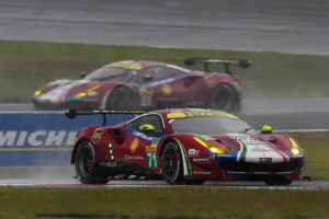 GTE-Pro. In classe GTE-Pro a iniziare il turno sulle auto 71 e 51 sono stati rispettivamente Davide Rigon e Alessandro Pier Guidi. Per entrambi il team ha deciso di puntare su gomme da bagnato pesante da sfruttare in un giro secco: Davide ha ottenuto 1’48”719 mentre Alessandro ha fermato i cronometri a 1’49”097. A quel punto entrambe le vetture sono rientrate al box ma mentre sulla 71 Bird è ripartito con gomme da bagnato, la 51 ha giocato la carta delle slick intagliate. Sam ha avuto bisogno di diversi giri per trovare un tempo ottenendo però un ottimo 1’47”671 al quarto giro che ha portato il combinato a 1’48”195, a meno di due decimi dalla seconda posizione ottenuta dalla Ford del leader di campionato Priaulx-Tinknell. Calado ha invece deciso di rientrare subito a cambiare gomme montando quelle da bagnato con cui ha poi ottenuto 1’48”544, tempo che ha portato il combinato a 1’48”702. Pole position per la Porsche di Lietz.Makowicki.