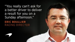 Eric Boullier, McLaren Racing Director, said: “With Fernando, you really can’t ask for a better driver to deliver a result for you on a Sunday afternoon – and I think everybody in Formula 1 would acknowledge that sentiment. He’s always been clear to me that this is a team he loves, and that his heart has always been set on staying. Today’s announcement shows that he’s fully committed to racing and winning as a McLaren driver, and, while we’ve often shared his frustrations over the past few years, we now feel that we can deliver on our promise to give him a competitive car next season. Consistency of driver line-up is one of those small but essential elements that really helps a team to maintain momentum, and, with Fernando and Stoffel, we’re lucky to be writing a fresh chapter with what we believe to be the best driver line-up in Formula 1.”