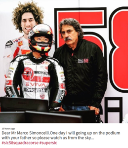 Sono già passati 6 anni da quel 23 ottobre. Da quella mattina che ha cambiato il modo di guardare la #MotoGP. La passione c’è sempre, ma senza Marco #Simoncelli è un’altra cosa, per chiunque, appassionati e addetti ai lavori. Manca il sorriso del Sic, mancano il casino e anche le polemiche che solo i grandi sanno sollevare, gli altri passano come acqua fresca e non lasciano il segno. Noi invece il segno del Sic ce l’abbiamo dentro, nel cuore, nella testa e negli occhi, dal 2011. E da quel mattino guardare il motomondiale, la MotoGP, non è più la stessa cosa. Ciao Marco, ovunque tu sia. E un abbraccio a tutta la famiglia Simoncelli e in particolare a papà Paolo, che continua a portare avanti il sogno del Sic, con forza e determinazione.