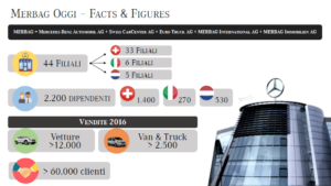 Con MERBAG S.p.A. si fa ancora più forte e ambiziosa la presenza della Stella sul territorio lombardo. L’acquisizione di Mercedes-Benz Milano rappresenta, infatti, un’operazione che apre un nuovo importante capitolo della storia di Mercedes-Benz a Milano e in Italia. MERBAG Holding AG è un importante gruppo elvetico, partner affidabile e di lunga data del Gruppo Daimler, con una lunga esperienza all’interno dell’organizzazione sales/after sales di Mercedes-Benz Vetture, Van e Truck e ben oltre 40 location in Svizzera, Italia e Lussemburgo.