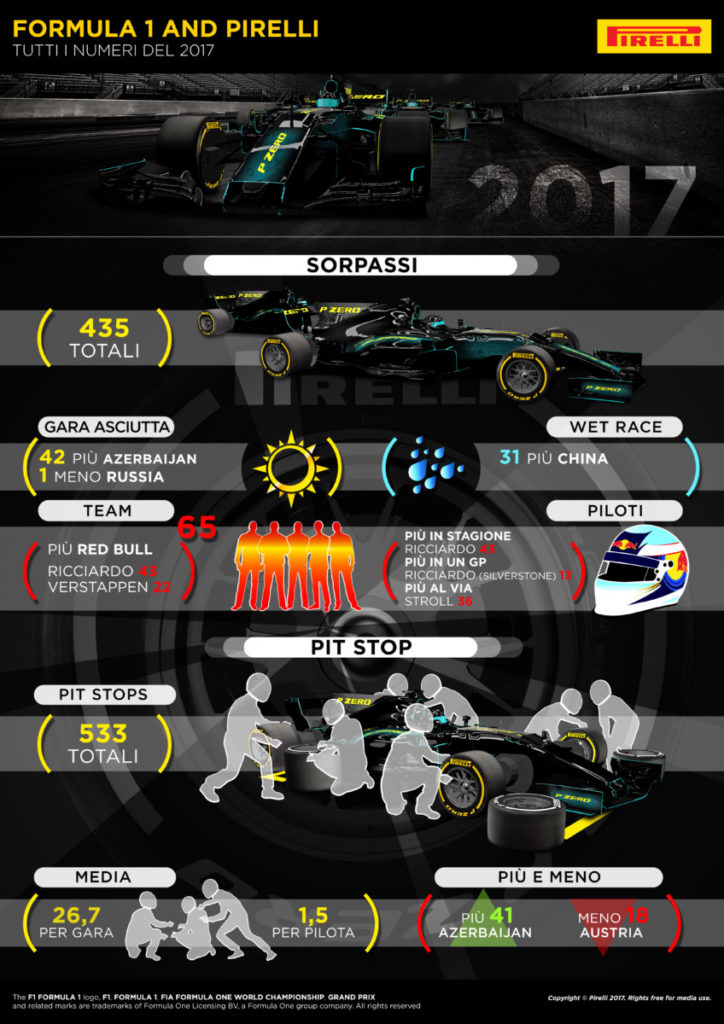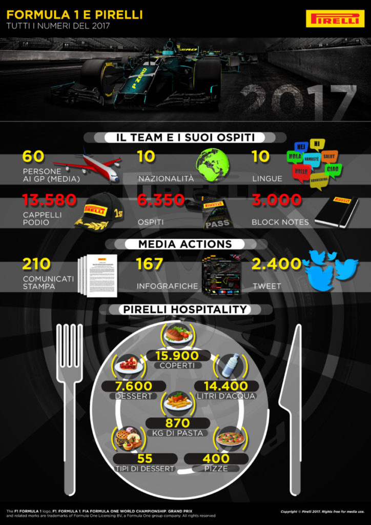 – Tweet F1 inviati dall’account @PirelliSport in tutta la stagione 2017: circa 2.400