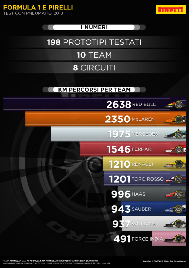 – Prototipi testati: 198 (di cui 147 slick, 18 intermediate e 33 rain)