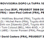 Pur dovendo fare da apripista in una tappa che comportava grandi difficoltà di navigazione e di guida, Stéphane Peterhansel e Jean-Paul Cottret hanno dato il massimo vincendo la tappa e riprendendosi il 2° posto in classifica generale. Con Carlos Sainz e Lucas Cruz sempre leader, due PEUGEOT 3008DKR Maxi sono di nuovo al comando della Dakar 2018. Stéphane Peterhansel e Jean-Paul Cottret hanno iniziato questa decima tappa con 7 min5s di ritardo sul 2° in classifica generale. Nonostante l’handicap di dovere fare da apripista in una speciale davvero impegnativa, i vincitori della scorsa edizione della Dakar hanno ingaggiato uno scontro diretto molto acceso con i loro diretti avversari. I due equipaggi erano alla pari al primo controllo della giornata! Malgrado le estreme difficoltà del percorso, l’equipaggio della PEUGEOT 3008DKR Maxi n°300 si è impegnato al massimo e ha conquistato la sua terza vittoria di tappa. Un risultato che gli permette di riprendersi il 2° posto in classifica generale a 50min35s da Sainz/Cruz.
