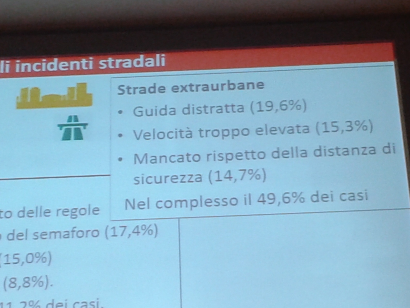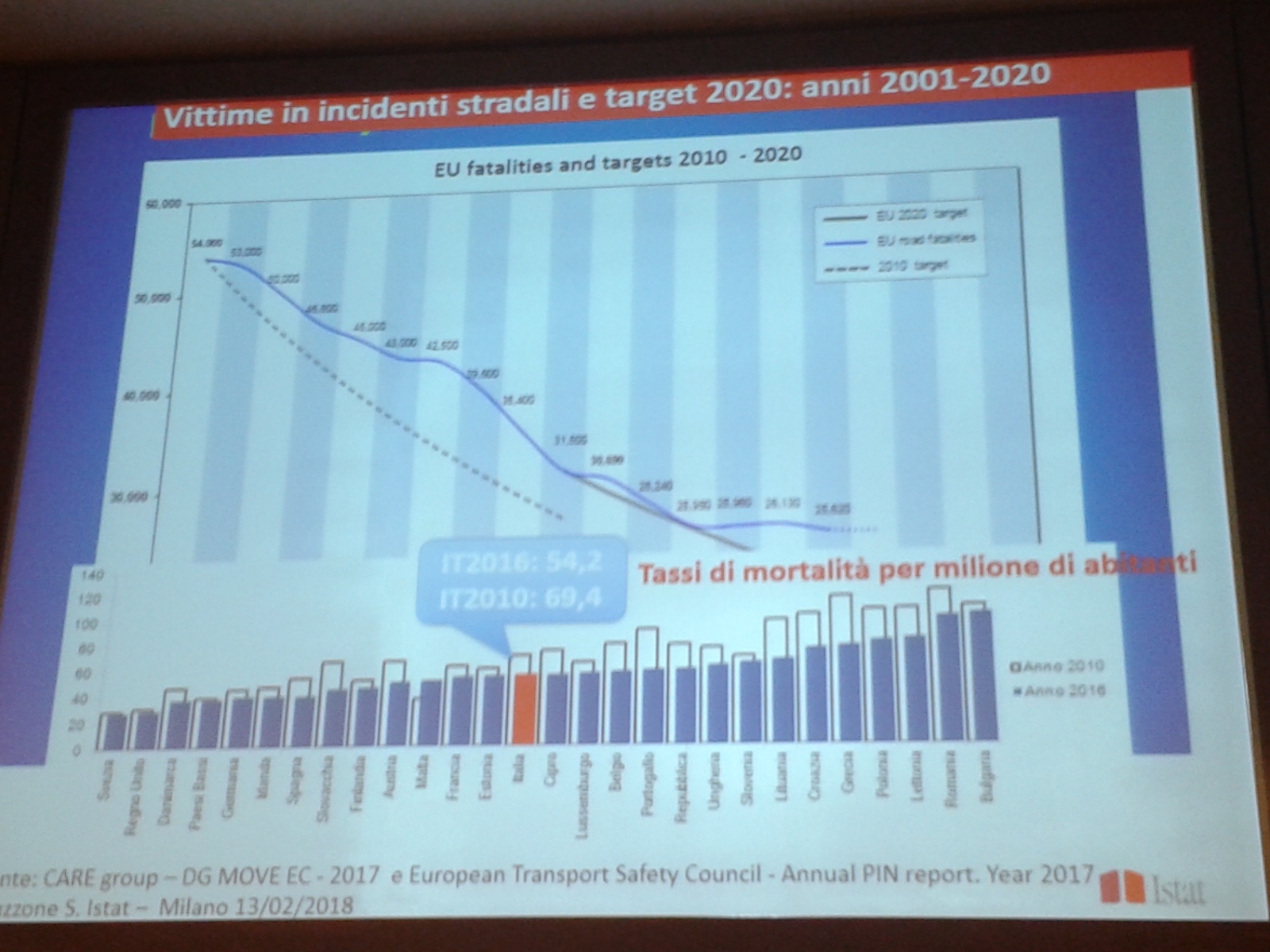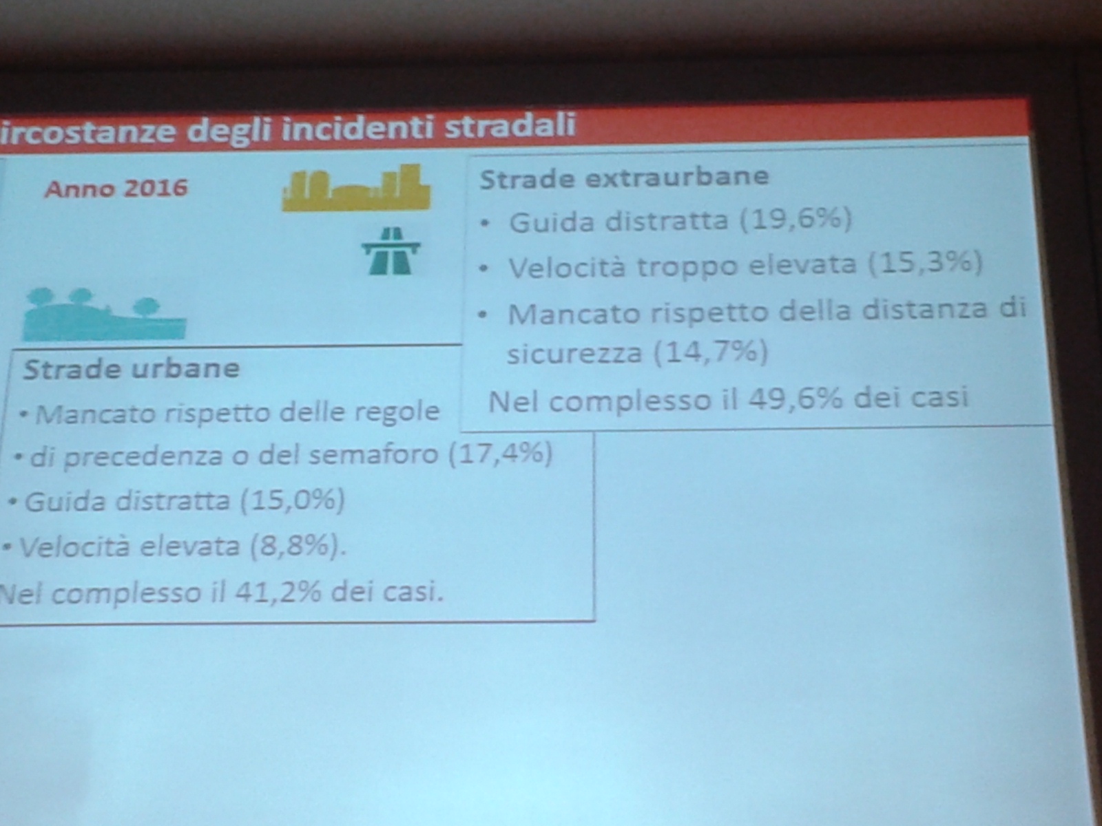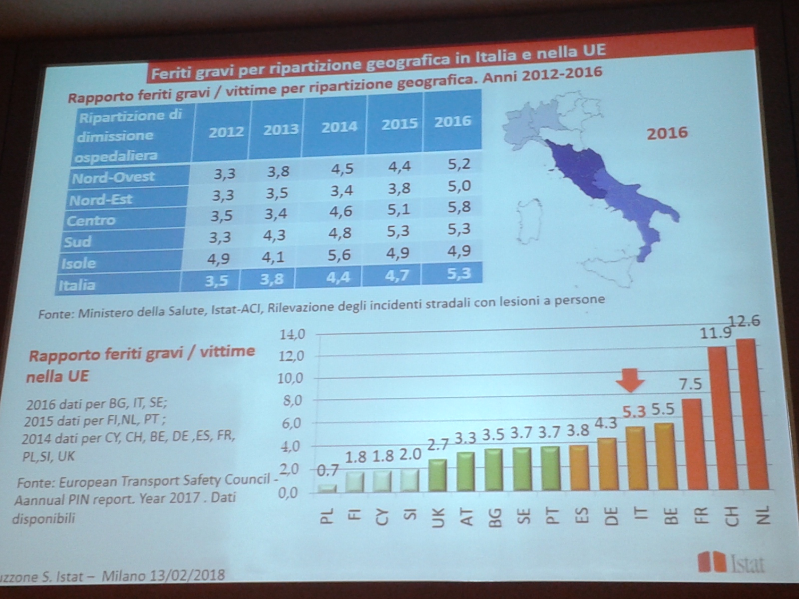 Silvia Bruzzone, responsabile Rilevazione nazionale degli incidenti stradali dell’Istat, dopo aver ricordato come nel 2016 in Lombardia gli incidenti stradali siano stati 32.785 causando 434 morti e 45.435 feriti, ha evidenziato come il maggior numero di incidenti si sia verificato in ambito urbano (25.879, il 78,9% del totale) con 234 morti e 34.416 feriti.