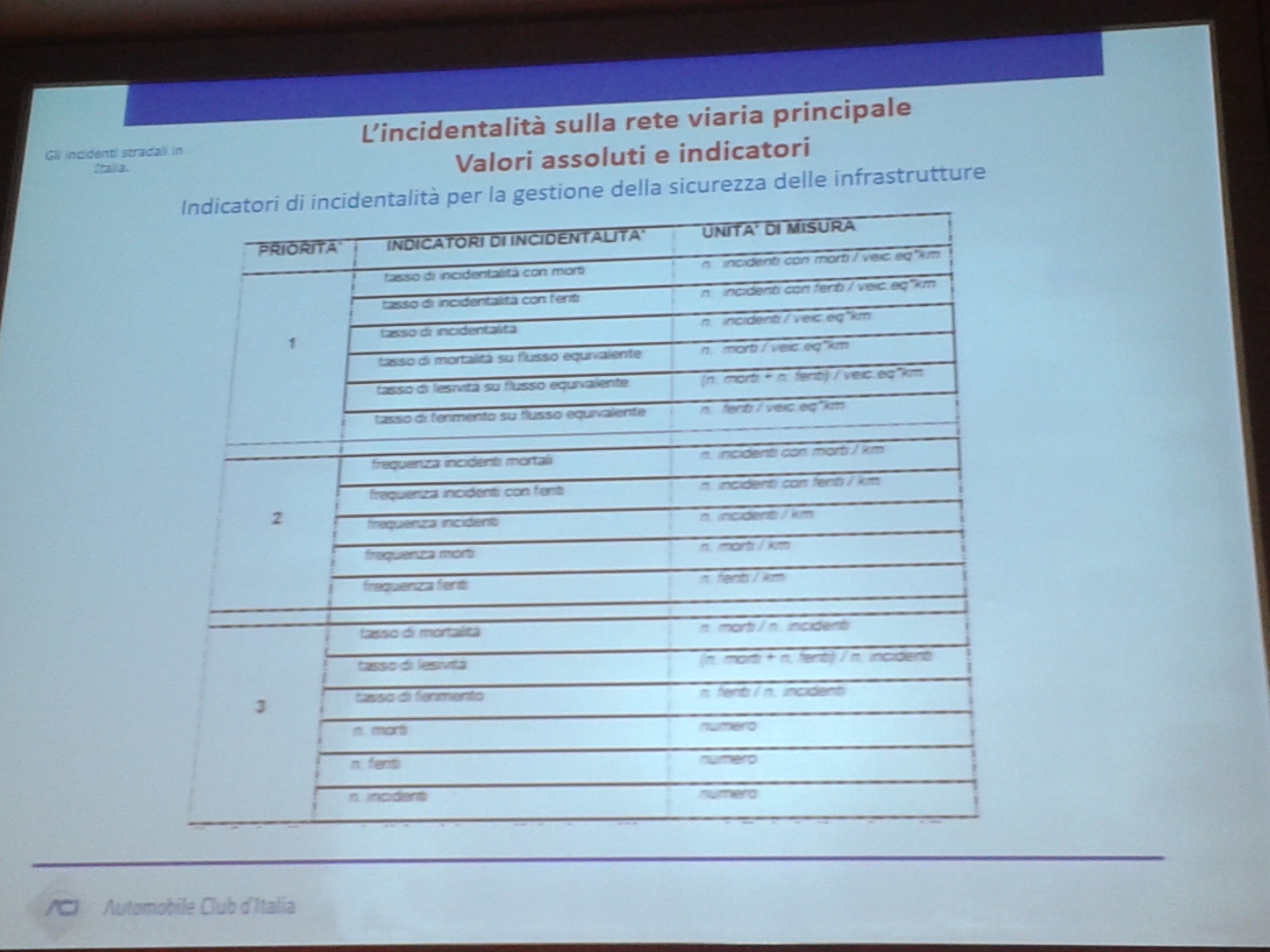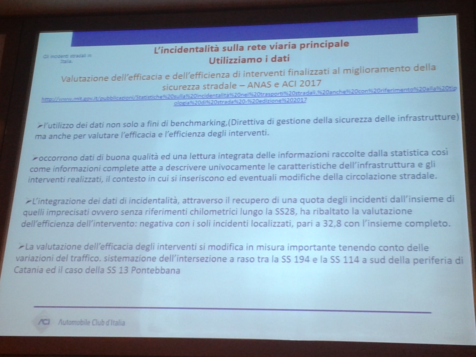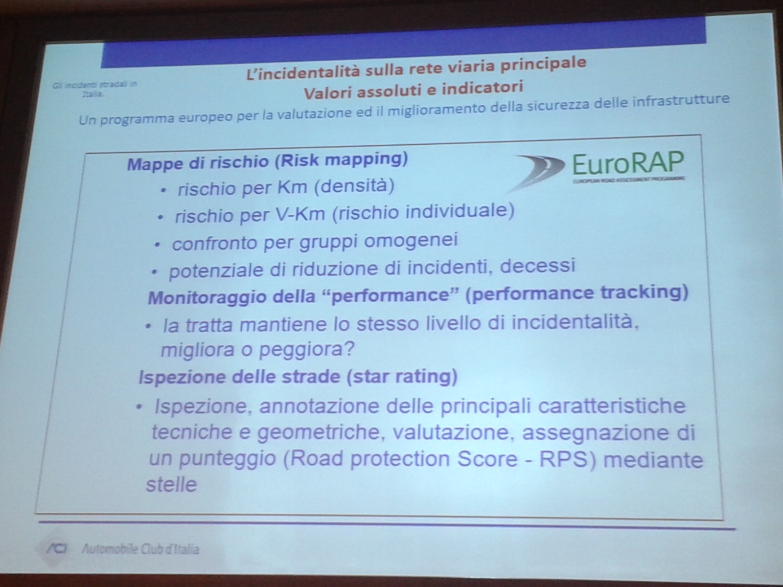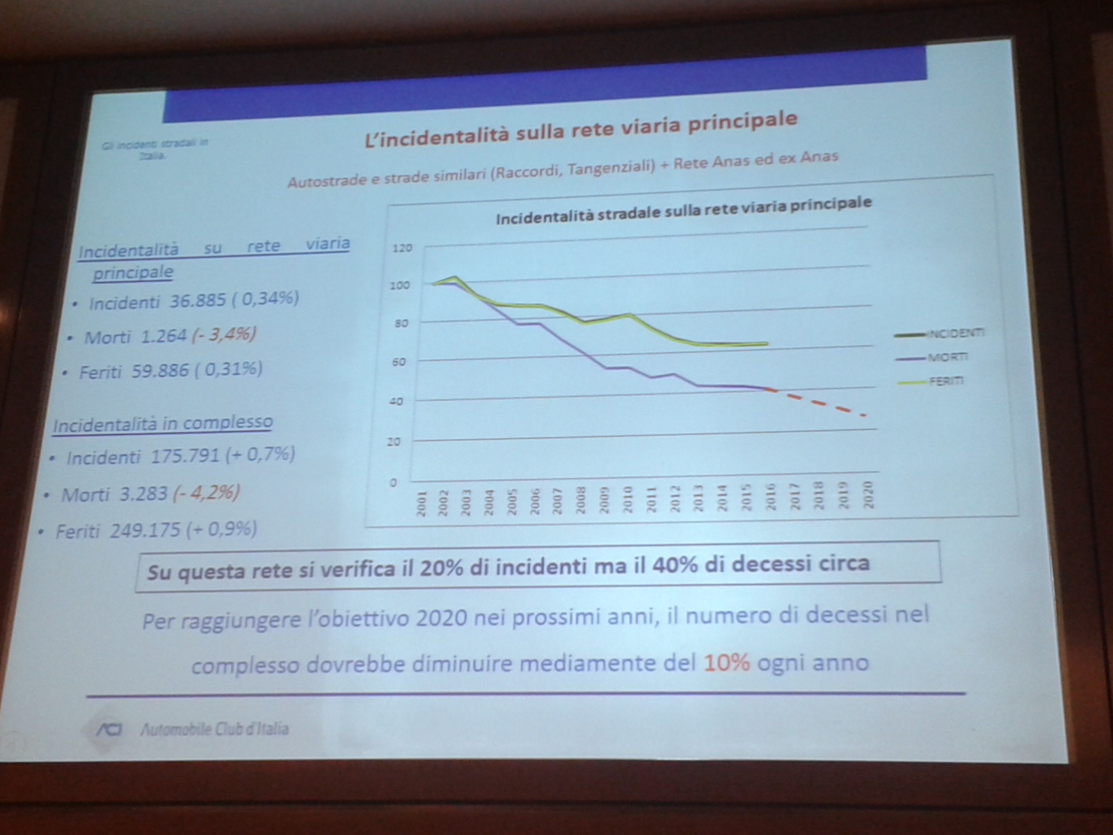 Lucia Pennisi, responsabile Area statistica dell’Automobile Club d’Italia, ha sottolineato l’importanza dell’elaborazione effettuata per localizzare gli incidenti stradali sulla rete viaria principale particolarmente utile per individuare le tratte più a rischio incidenti su cui effettuare le ispezioni. In Lombardia questa rete stradale si contraddistingue per un’alta densità di incidenti (con 1,35 incidenti per chilometro che è pari due volte la media nazionale) con un indice di mortalità pari a 2,34. I km più a rischio incidenti si trovano sulle tangenziali est e ovest milanesi e sulle strade statali 36 del lago di Como, 35 dei Giovi, 9 Emilia, 336 dell’Aeroporto della Malpensa.