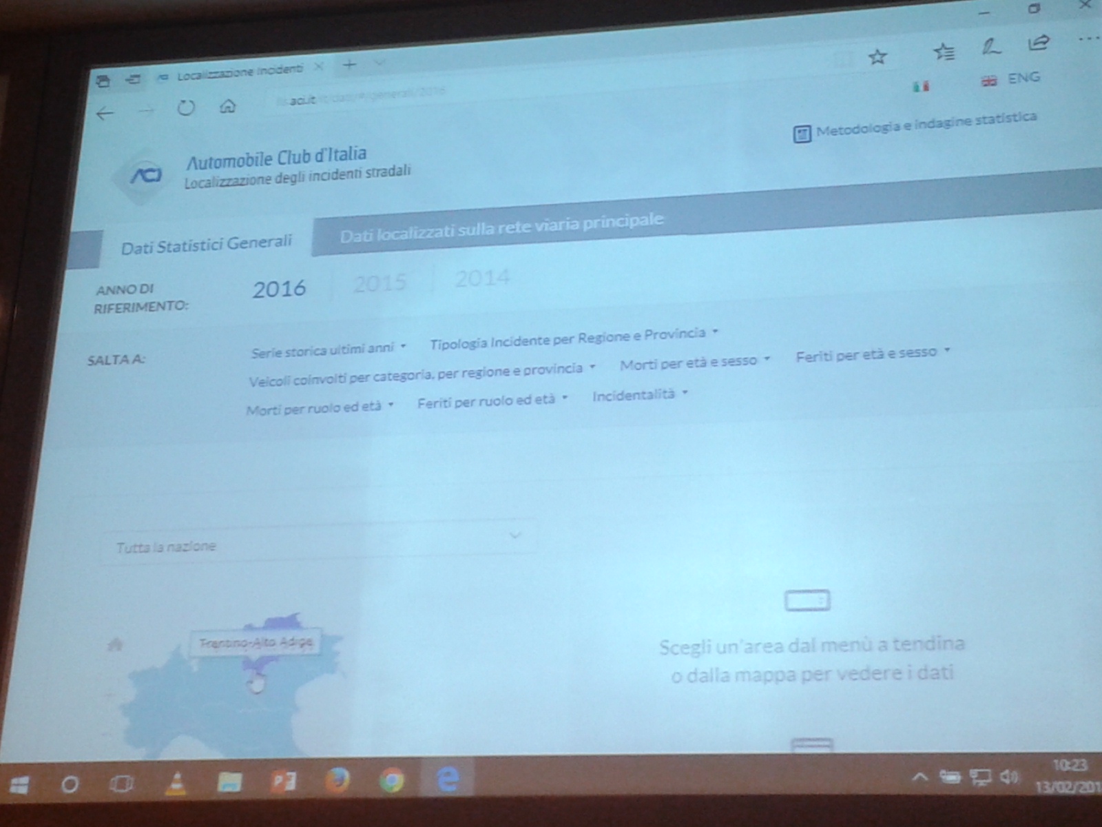 Silvia Bruzzone, responsabile Rilevazione nazionale degli incidenti stradali dell’Istat, dopo aver ricordato come nel 2016 in Lombardia gli incidenti stradali siano stati 32.785 causando 434 morti e 45.435 feriti, ha evidenziato come il maggior numero di incidenti si sia verificato in ambito urbano (25.879, il 78,9% del totale) con 234 morti e 34.416 feriti.