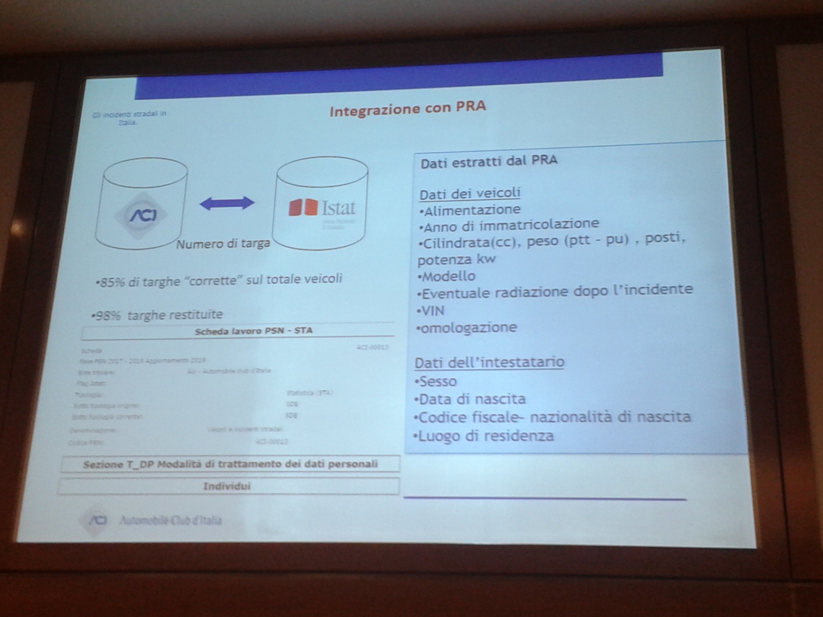 Un possibile punto di contatto fra le esigenze delle varie banche dati è stato identificato da Stefano Desantis, dirigente responsabile Servizio Attuariato, Statistiche e Analisi banche dati dell’Ania, nella “creazione di un database di raccolta dati circa l’incidentalità stradale che, ancorché limitato a fattispecie di incidente con determinate caratteristiche (es. incidenti che abbiano causato solo danni fisici alla persona) sia il più esaustivo e rappresentativo possibile del fenomeno oggetto di analisi”.