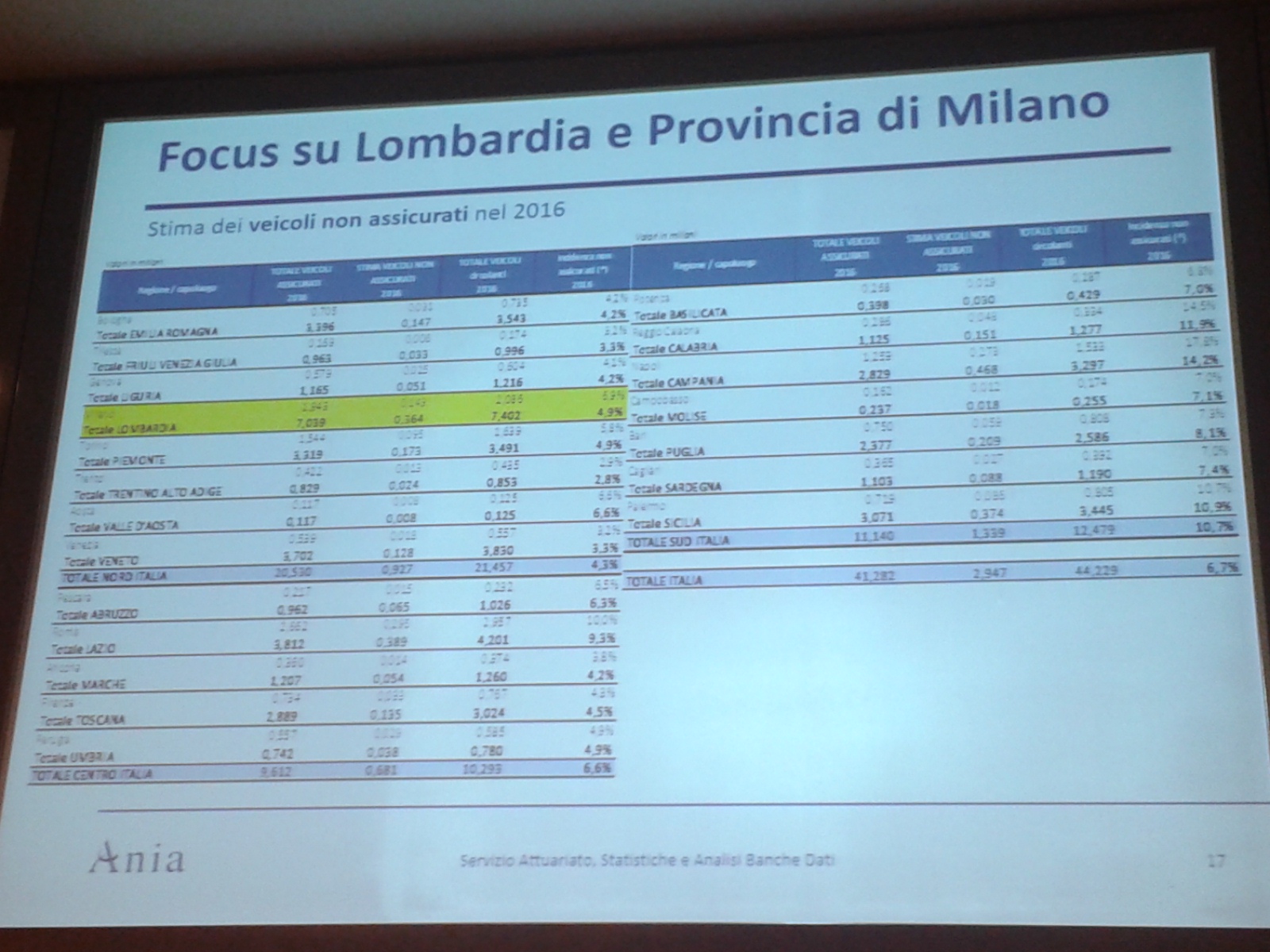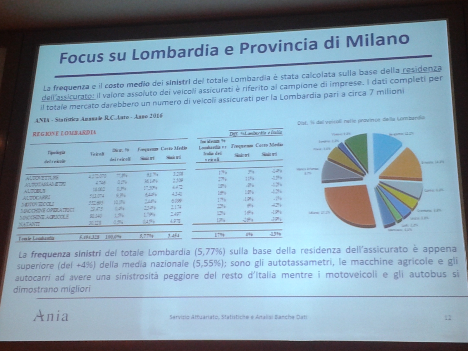 Lucia Pennisi, responsabile Area statistica dell’Automobile Club d’Italia, ha sottolineato l’importanza dell’elaborazione effettuata per localizzare gli incidenti stradali sulla rete viaria principale particolarmente utile per individuare le tratte più a rischio incidenti su cui effettuare le ispezioni. In Lombardia questa rete stradale si contraddistingue per un’alta densità di incidenti (con 1,35 incidenti per chilometro che è pari due volte la media nazionale) con un indice di mortalità pari a 2,34. I km più a rischio incidenti si trovano sulle tangenziali est e ovest milanesi e sulle strade statali 36 del lago di Como, 35 dei Giovi, 9 Emilia, 336 dell’Aeroporto della Malpensa.