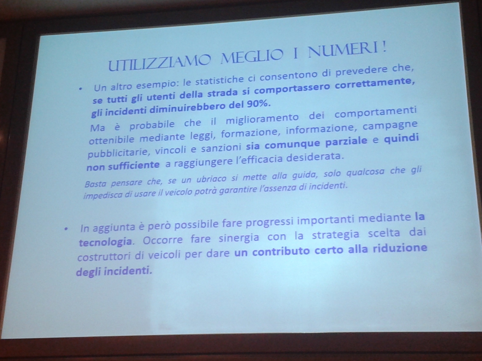 Ne hanno parlato i rappresentanti di due aziende aderenti all’ANFIA – Associazione Nazionale Filiera Industria Automobilistica: Tina Martino per Octo Telematics, Riccardo Tranquillini e Massimo Zenobi per Meta System. Sono stati illustrati, in particolare, gli sviluppi delle scatole nere evolute, approfondendo il loro apporto ad una maggiore responsabilità individuale e collettiva.