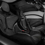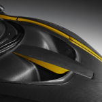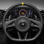 Questi colori li ritroviamo inoltre all’interno dell’abitacolo della vettura, con i pistoni delle portiere in Laurel Green come le cuciture a contrasto sui sedili in Carbon Black Alcantara® e degli inners e la fascia delle portiere. Il volante presenta anch’esso una striscia centrale in pelle nel tipico colore giallo. Entrambi i sedili riportano la “S” di Senna nel poggia testa e lo stesso dettaglio lo ritroviamo in una finitura satinata in fibra di carbonio a vista sui piatti dell’ala posteriore, un risultato che si ottiene con un processo altamente specializzato nel quale ogni logo in finitura opaca viene incorporato in un pannello in fibra di carbonio lucido. Uno dei paraurti anteriori, porta con fierezza il logo Senna.