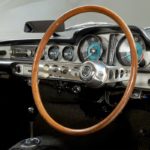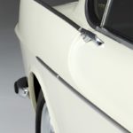 L’auto di Roger Moore è stata costruita presso lo stabilimento Volvo di Torslanda, in Svezia, nel novembre del 1966. La 1800 S con carrozzeria Bianco Ghiaccio monta cerchi Mini Lite dall’originale motivo a raggi ‘tronchi’, fari antinebbia Hella e volante in legno Volvo. Internamente, la vettura si distingue per alcuni dettagli che rievocano le riprese della serie televisiva ‘Il Santo’, come ad esempio il termometro montato sul cruscotto e un ventilatore separato che veniva utilizzato per rinfrescare gli attori durante le riprese in studio. Roger Moore è stato il primo proprietario ufficiale di questo famoso esemplare di 1800 S. La targa londinese, NUV 648E, è stata rilasciata il 20 gennaio 1967. Due settimane dopo, Roger Moore firmò i documenti di immatricolazione della vettura che hanno accompagnato l’auto fino ai giorni nostri.