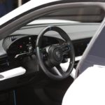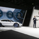 La concept nell’esclusivo colore Light Grey Metallic è immediatamente riconoscibile come Porsche anche da dietro. Accanto al design sportivo e allo spoiler posteriore, in grado di incanalare l’aria alla perfezione, un altro elemento tipico è la striscia luminosa orizzontale. Il logo Porsche, bianco e luminescente, è composto da lettere di vetro inserite all’interno di una protezione tridimensionale a forma di circuito stampato. Durante la ricarica la ‘E’ nel logo Porsche pulsa e il circuito stampato viene attivato da impulsi di luce, rappresentando visivamente e in modo stupefacente il flusso di energia davanti agli occhi dei clienti. Il grande tetto panoramico di vetro si estende dal parabrezza al cofano posteriore evidenziando la sensazione di spaziosità.