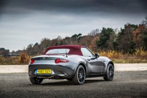 MX-5 Cherry Edition, caratterizzata dall’elegante contrasto tra la livrea in Machine Gray e la capote in tela Dark Cherry (rosso ciliegia). La gamma MX-5 2018 è disponibile negli allestimenti Exceed e Sport, sia nella versione soft top con capote manuale, sia in quella con tetto rigido ad azionamento elettrico nota come RF (Rectractable Fastback). Entrambe presentano migliorie in termini di dotazioni e di finiture rispetto alle versioni precedenti. L’allestimento Evolve non è invece più ordinabile.