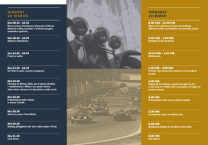 Dopo un passaggio nel centro di Monza, le auto partiranno alla volta di Milano con un vero e proprio defilè nel cuore del Quadrilatero della moda, passando da via Montenapoleone fino ad arrivare all’ombra della Madonnina, e poi in Piazza Castello. Il nuovo percorso della Milano-Sanremo, profondamente rivisitato rispetto alle ultime rievocazioni, toccherà nei giorni successivi, oltre al territorio lombardo, il Piemonte e la Liguria in un tragitto di oltre 600 chilometri che comprenderà più di 60 prove totali: 52 prove speciali e 6 prove di media (con rilevamenti intermedi). Giovedì 22 marzo, l’ingresso in Autodromo per il pubblico è libero e i parcheggi interni gratuiti. Per maggiori informazioni e per conoscere il percorso e il programma dettagliato della gara è possibile visitare il sito www.milano-sanremo.it