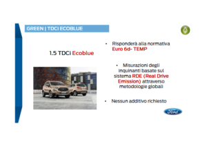 Tutto da scoprire è invece il nuovo quattro cilindri diesel, che non tradisce le aspettative, con prestazioni adeguate al peso dell’auto e consumi che si mantengono su livelli ottimi. Nel complesso la rinnovata EcoSport dimostra di avere il fisico per difendersi in segmento affollatissimo e le sue doti migliori si trovano nell’abitabilità, nello spazio a disposizione per persone e bagagli, nel comfort generale e nella scelta di motori briosi, ma non per questo assetati di carburante. E, cosa importante, è pulito e risponde alle nuove normative, quindi chi decidesse di puntare su questo motore non inquina, contrariamente al terrorismo psicologico e alla guerra al diesel fatta da molte, troppem amministrazioni comunali.