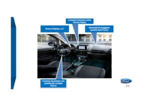 Esattamente come la Fiesta, anche la EcoSport consente tre diversi livelli di equipaggiamento del sistema di infotainment, con il più ricco e completo che prevede un touch screen da 8 pollici attraverso il quale si gestiscono tutte le funzioni più importanti, dalla retrocamera per le manovre al navigatore, all’impianto audio B&O da 675 Watt con10 altoparlanti. Il tutto è completato dal sistema Sync 3, compatibile con gli smartphone Apple e Android, che consente di gestire dall’auto tutte le app presenti sul telefono.