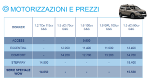 Dokker WOW è disponibile nella motorizzazione benzina 1.2 Tce 115CV e diesel 1.5 dCi 90CV.