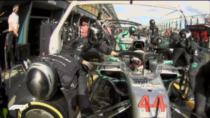 Hamilton ha preso il comando dalla pole e ha resistito a un tentativo di attacco da parte di Raikkonen alla curva 3, andando poi ad allungare. La Ferrari è stata la prima ad aprire i pitstop, richiamando il finlandese nel giro 19, passato dalle ultrasoft alle soft e rientrato 3°. La Mercedes ha risposto immediatamente richiamando Hamilton nel giro successivo, rientrato secondo alle spalle di Vettel, che è rimasto fuori. Poi il colpo di scena che non ti aspetti quando i piloti della Haas Magnussen e Grosjean, che erano quarto e quinto, si sono ritirati a un giro di distanza per un problema causato dalla pistola per il cambio gomma dell’anteriore sinistra. Per spostare la macchina del francese è stata attivata la VSC (poi diventata SC), permettendo ai piloti che non avevano fatto la sosta di avere un vantaggio, dato che gli altri in pista dovevano guidare a velocità limitata. Vettel è stato tra questi ed è tornato in pista davanti a Hamilton che, stupito, ha chiesto al team cosa fosse successo e se avesse sbagliato qualcosa. Da quel momento i due sono stati incollati ma, nonostante potesse usare il DRS, l’inglese non è riuscito a riprendere la leadership.