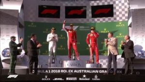 e ha effettuato il pitstop durante il periodo di VSC, rientrando davanti all’inglese, che sembrava avere il successo in tasca. Per Vettel si tratta della 48° vittoria e del podio numero 100 in carriera, come Michael Schumacher, Alain Prost e Hamilton. Proprio l’inglese ha accusato il colpo, pensando probabilmente al fatto che anche quest’anno non è riuscito a tradurre la sua pole nel successo finale, ma un secondo posto non è comunque da buttare, specie considerando l’intero weekend di Melbourne. Terzo gradino del podio per Kimi Raikkonen che è riuscito a tenere dietro la Red Bull di Daniel Ricciardo.