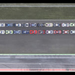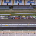 A conclusione della giornata di gara, senza un minuto da perdere per catturare la luce magica prima del tramonto, tutte le auto sono state sistemate lungo il rettilineo. Il tempo a disposizione era di soli 90 minuti per posizionare dei punti di riferimento sull’asfalto del circuito, portare le macchine sul rettifilo e quindi allinearle perfettamente. A causa del divieto di accensione dei motori delle auto da corsa oltre le 18.30 sul circuito, ogni macchina, del peso di circa una tonnellata, è stata spinta e posizionata a braccia da meccanici, piloti e personale di pista per ricreare un’immagine che durerà altri 40 anni.