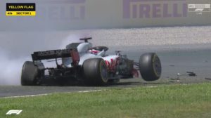 Grosjean la penalità di 3 posizioni sulla griglia del prossimo GP e due punti di penalità – portando il totale a 5 – ritenendolo colpevole della manovra fatta dopo il testacoda.