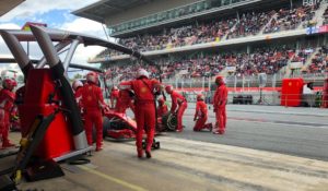 Il quarto posto di Sebastian Vettel è il magro bottino di un GP di Spagna tutto in salita per la Ferrari, con Kimi Raikkonen costretto al ritiro per una perdita di potenza. Alla partenza Vettel scatta bene e dalla terza piazza va all’attacco all’esterno e passa Bottas, Raikkonen tiene la quarta posizione e subito dopo esce la safety car quando Grosjean va in testacoda innescando una collisione multipla. Alla fine del sesto giro si riparte, a posizioni invariate. Ne passano altri 12 prima che la squadra, giocando d’anticipo, chiami il tedesco ai box per il cambio gomme, montando le medie. Bottas reagisce due giri dopo ma, nonostante il traffico, sfruttando la scia di Magnussen Vettel riesce a stare davanti alla Mercedes in uscita dal box.