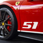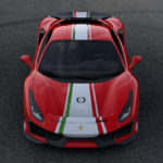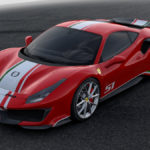 Gli esterni presentano una livrea inedita caratterizzata da una fascia tricolore che richiama direttamente quella della 488 GTE da gara, impreziosita dalla presenza dell’alloro celebrativo del titolo WEC, dal logo del campionato e dall’identificazione “PRO” che indica la classe di appartenenza, proprio come sulla vettura da corsa. La bandiera italiana sottolinea le linee aerodinamiche della Ferrari iridata anche sulle fiancate dove è presente il numero che ogni cliente sarà libero personalizzare. La versione che viene svelata a Le Mans è contraddistinta dal 51 portato in gara dall’equipaggio campione del mondo. A completare la personalizzazione estetica degli esterni contribuiscono il canale aerodinamico S-Duct in nero opaco e l’ala posteriore sospesa a “coda di rondine” in carbonio a vista. La Ferrari 488 Pista con allestimento “Piloti Ferrari” sarà disponibile in quattro diversi colori ispirati al mondo delle competizioni: Rosso Corsa, Blu Tour De France, Nero Daytona e Argento Nurburgring.