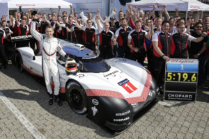 Questa mattina, il pilota Timo Bernhard ha tagliato il traguardo del circuito Nürburgring-Nordschleife con un tempo di 5 minuti e 19.55 secondi al volante della Porsche 919 Hybrid Evo. Il 37enne tedesco, già due volte vincitore di Le Mans e attuale detentore del Titolo mondiale del Campionato WEC, ha così battuto il precedente record sul giro registrato ben 35 anni fa sul celebre circuito tedesco di 20,8 chilometri. Era infatti il 28 maggio 1983 quando Stefan Bellof completò il giro della pista famosa in tutto il mondo, a bordo di una Porsche 956, stabilendo un tempo leggendario di 6:11.13 minuti. La Porsche 919 Hybrid Evo è un’evoluzione del prototipo Le Mans con cui Porsche ha vinto la 24 Ore di Le Mans nel 2015, 2016 e 2017, oltre che il Campionato Mondiale Endurance FIA per tre volte consecutive, aggiudicandosi rispettivamente il titolo costruttori e piloti.