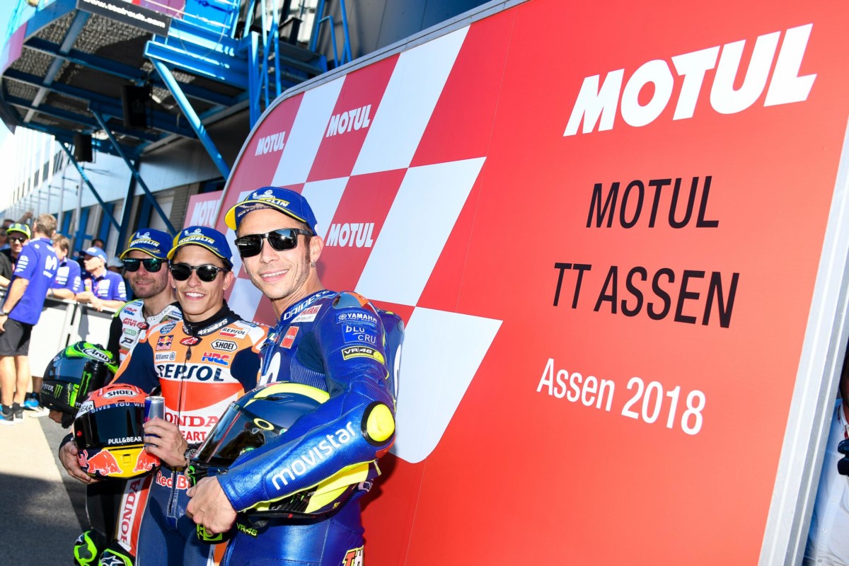 Le qualifiche avvincenti di Assen si chiudono con il terzo tempo di Valentino Rossi, in un crescendo per il pilota Movistar Yamaha MotoGP. 1.32.850s il suo tempo, a pochissimo dalla pole di Marc Marquez (Repsol Honda), per la prima volta davanti a tutti in Olanda. Ma non avrà vita facile, visto che il Dottore, che ad Assen ha vinto per otto volte nella classe regina, è uno dei candidati a essere il grande rivale del numero 93.