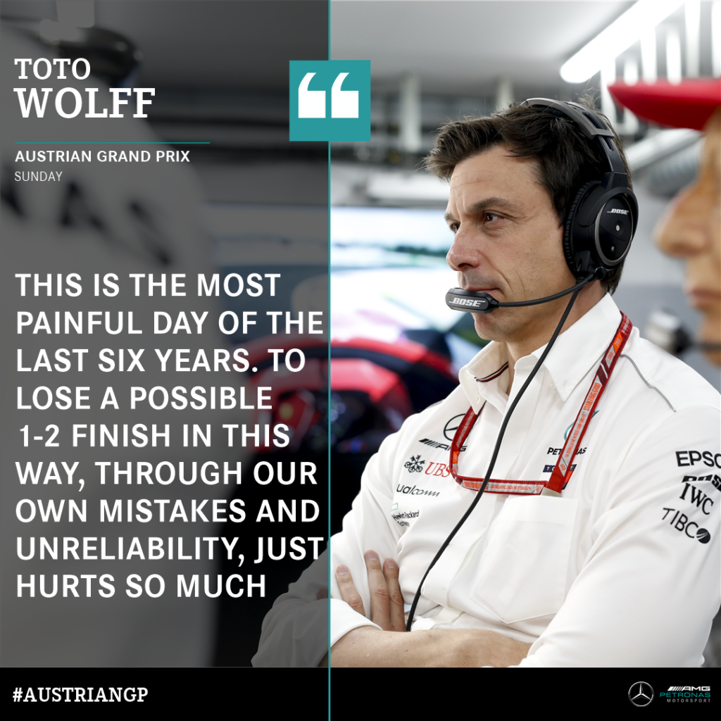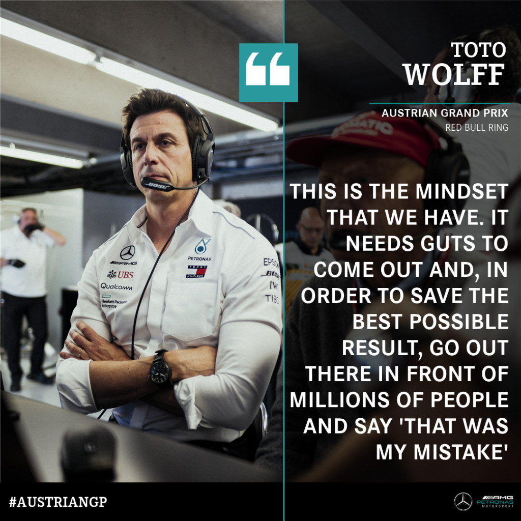 Il capo stratega Mercedes non perderà il posto dopo l’errore commesso durante il GP d’Austria. Sia Lewis Hamilton sia Valtteri Bottas si sono ritirati nel corso della gara per problemi tecnici, con Sebastian Vettel che è tornato leader del campionato per un punto. Ma, oltre a questi guai e a un doppio ritiro storico, lo stratega Mercedes James Vowles ha detto ad Hamilton via radio: “Oggi ho gettato al vento la vittoria. Mi spiace, è colpa mia“. Il team boss Toto Wolff la definito la giornata di ieri come la più dolorosa nella sua carriera in Mercedes, ma ha sostenuto Vowles: “E‘ uno dei migliori. E ci vuole coraggio ad ammettere in pubblico di aver commesso un errore“.