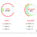 Ogni giorno sulle nostre strade vengono rubate 274 vetture e di queste ben 164 spariscono nel nulla. Nel 2017 i furti sono diminuiti (di poco sotto la soglia dei 100.000), ma sono calati ancor più significativamente i recuperi (solo 4 vetture su 10 vengono recuperate).