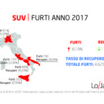 Come accennato, nel 2017 a fronte del calo del numero dei furti di auto (-7,6%, da 108.000 a 99.987), si è confermato in costante crescita un business che ormai da 3-4 anni non dà tregua agli automobilisti, quello delle sottrazioni dei SUV: lo scorso anno si sono verificati ben 4.623 episodi, un aumento dell’8,2% rispetto al 2016. A rendere ancora più allarmante il dato, la percentuale di recupero ‘spontaneo’ ferma al 31% e inferiore di quasi 10 punti percentuali rispetto a quella delle autovetture. Di 7 SUV su 10 rubati si perdono definitivamente le tracce.