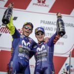Valentino Rossi: “È stata la gara più bella finora. Ho guidato come dovevo fare, salvando le gomme. Abbiamo fatto tutto bene. Avevo delle motivazioni extra oggi: mio fratello Luca ha raggiunto il primo podio in Moto2 e io non volevo essere da meno, inoltre voglio dedicare questa piazza d’onore a Don Cesare [in settimana è infatti mancato il famoso parroco di Tavullia che suonava le campane a ogni successo di Rossi sin da quando correva in 125]. In questi dieci giorni ho lavorato duro per questo podio. Sulla carta era una pista ostica per noi ma ci siamo impegnati a fondo per preparare una grande gara. Ho studiato bene il garone che ha fatto Folger nel 2017, le sue linee. Marquez andava forte e soprattutto la sua Honda consuma meno le gomme crispetto a noi. Io e Maverick Vinales ci completiamo. Se dal Giappone arrivano alcune novità possiamo fare quei miglioramenti dal punto di vista dell’accelerazione che ci permetterebbero di essere più efficaci. Per quanto riguarda Marquez, 46 punti in meno non sono pochi e lui è più forte. Abbiamo bisogno di continuare così, fare delle belle gare e migliorare i nostri punti deboli”.