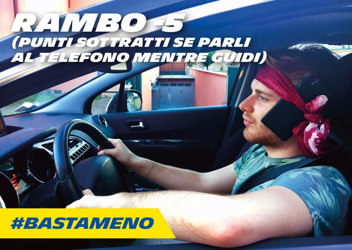 Chiara è un’infermiera e si trovava in vacanza nelle Marche con tutta la famiglia quando è venuta a sapere del concorso. “Sono entrata nel sito che, con un linguaggio semplice ed efficace, affrontava una tematica molto importante, la sicurezza stradale. Così ho condiviso le tematiche del concorso con la mia famiglia e insieme abbiamo deciso di partecipare”. Poi la trovata geniale: Chiara decide di ispirarsi a Rambo, l’eroe tutto muscoli interpretato da Sylvester Stallone nell’omonimo film del 1982. “Abbiamo immaginato una situazione molto comune al giorno d’oggi e altrettanto rischiosa: usare il telefono mentre si guida. A volte si è disposti a tutto pur di rimanere “connessi”, anche a legarsi il telefono in testa! Perché non rappresentarlo in una foto? E così mio fratello si è improvvisato “attore”…. La fascia in testa, l’atteggiamento un po’ spavaldo…. ma sì, abbiamo pensato, è proprio lui: Rambo! E “-5” sono i punti della patente che vengono tolti se si guida parlando al cellulare!”.