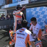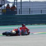 Marc Marquez vince il GP di Aragon e consolida la leadership in campionato, chiudendo davanti alla Ducati di Andrea Dovizioso. Il campione Honda ha passato l’italiano a tre giri dalla fine, conquistando un successo che lo avvicina al quinto Titolo. Terzo Andrea Iannone, che torna sul podio da dove mancava da Jerez, in maggio. Uno dei papabili per la vittoria, il poleman Jorge Lorenzo, è uscito subito dai giochi: andato lungo alla frenata della prima curva, finendo sullo sporco, ha perso il posteriore cadendo. Rialzatosi zoppicante, è stato portato al centro medico dove gli è stata diagnosticata una lussazione al metatarso falangeo dell’alluce destro oltre a una frattura composta del secondo metatarso. I medici hanno quindi ingessato il piede destro. Dovizioso si è ritrovato davanti a Marquez e alle due Suzuki di Alex Rins e Iannone. L’ordine dei primi è rimasto praticamente invariato ma a circa metà gara Dovizioso e Marquez hanno iniziato ad allungare sugli inseguitori.