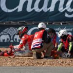 Andrea Dovizioso ha chiuso al comando la prima giornata di prove del GP di Thailandia, in programma questo fine settimana sul circuito di Buriram nel nord est del Paese asiatico. Il pilota italiano del Ducati Team, terzo questa mattina, ha ottenuto il miglior crono negli ultimi minuti delle FP2, girando in 1:31.090. Jorge Lorenzo, sceso in pista questa mattina ancora dolorante al piede destro dopo la caduta di Aragón, ha chiuso le FP1 in 17° posizione ed è purtroppo nuovamente caduto a causa di un high side in frenata alla curva 3 durante il suo secondo run. Jorge è stato portato subito al centro medico del circuito dove gli sono state riscontrate delle abrasioni all’avambraccio destro ed una contusione sia al polso sinistro che al piede destro già infortunato in Spagna. Il pilota maiorchino si è recato presso l’ospedale locale per un ulteriore controllo al polso sinistro ma è stato comunque dichiarato “fit to ride” per domani dai medici dell’organizzazione.