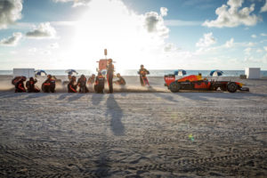 Dopo aver portato la RB7 sul Golden Gate di San Francisco e tra le strade di Las Vegas, passando per la Monument Valley, la monoposto ha attraversato altri due luoghi iconici degli USA: Miami Beach e le Rocky Mountains. La Red Bull è stata portata in cima alla Rockies Scenic Byway, un altopiano che si trova a oltre 2.700 metri e ha effettuato una sosta al Twin Lakes General Store, sulle colline del Colorado. Dopo oltre 5mila km dalla partenza sulla costa occidentale, il viaggio del team Red Bull Racing si è concluso a Miami, dove la RB7 ha fatto un giro lungo le strade del quartiere in stile art déco di South Beach e un pitstop sulla famosa spiaggia.