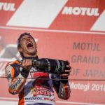 Marc Marquez took an incredible victory at Twin Ring Motegi today, becoming the 2018 MotoGP World Champion with three races to go, in front of Honda President and CEO Mr Takahiro Hachigo, who joined him on the podium. After starting from the sixth spot on the grid, Marc was immediately able to recover four positions, taking over second place and engaging in race-long battle with title contender Andrea Dovizioso and fellow Honda rider Cal Crutchlow. With two laps remaining, the Italian rider crashed out of the race, just after Marc had passed him in preparation for a last-lap duel.