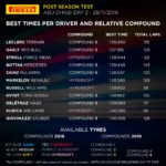 A fine giornata, il miglior giro di Charles Leclerc (il migliore della giornata e della due giorni di test) è stato di 1’36”450, ottenuto con pneumatici Hypersoft.