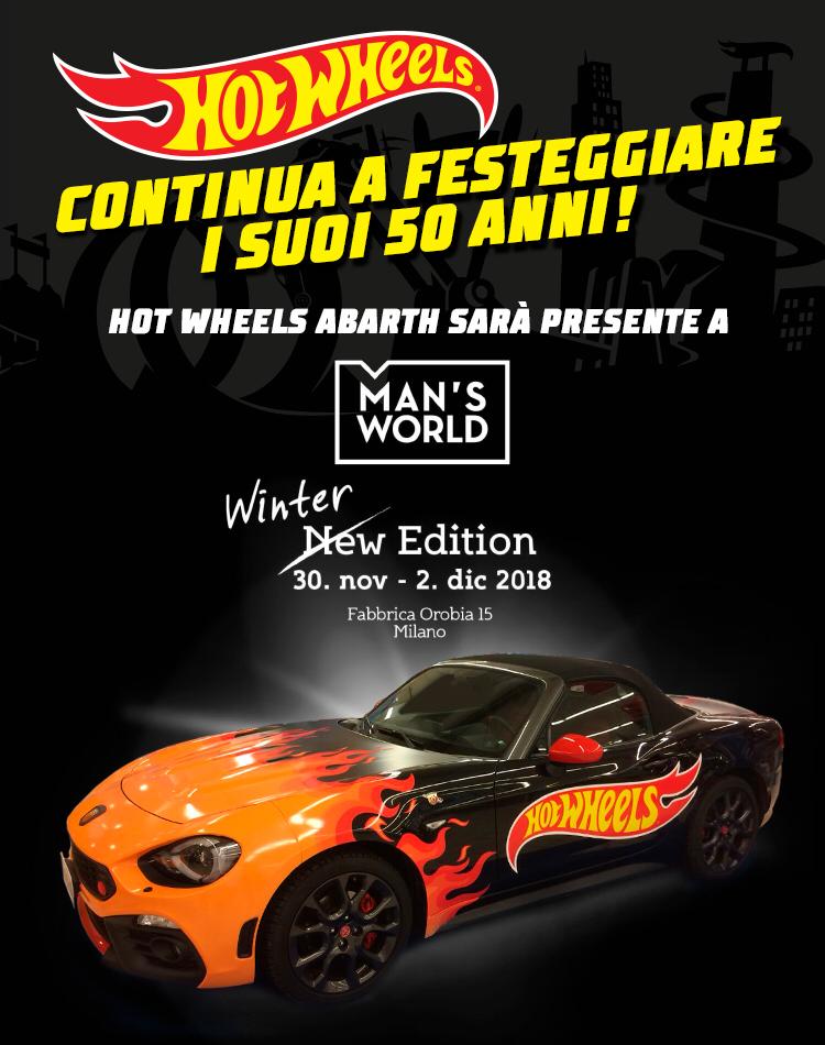 Hot Wheels, il brand di automobiline giocattolo più amato di tutti i tempi da grandi e piccini, ha appena compiuto 50 anni e arriva in una spettacolare versione, che incarna le dimensioni reali di una vera Abarth. A ospitare questa Hot Wheels in carne e ossa è stato, dal 30 novembre al 2 dicembre a Milano, Man’s World, l’evento internazionale che racchiude tutte le passioni che più caratterizzano il mondo maschile.