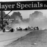 Quel giorno la McLaren di Teddy Mayer schierava tre monoposto. Una per Hulme e una per Revson, partiti entrambi in prima fila vicini al poleman di giornata Peterson su Lotus. La terza McLaren, in P6, era per il giovane e talentuoso Jody Scheckter che (a giusta ragione, col senno di poi) era visto come futuro astro nascente della F1. Il gran premio parte e alla fine del primo giro, nella foga del recupero, Jody alla curva Woodcote che immette sul traguardo, allarga troppo la traiettoria, perde la vettura, mette una ruota sull’erba e da lì si scatena il finimondo.