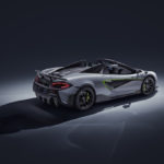 Gli accenti Napier Green vengono applicati utilizzando una nuova tecnica proveniente dal motorsport che vede la vernice compressa in un film leggero e flessibile che garantisce una corrispondenza cromatica su misura di alta qualità. Il film è stato utilizzato sulle vetture da corsa McLaren 720S GT3 e 570S GT4 e questa applicazione rappresenta l’impegno di MSO verso nuove e innovative tecnologie. Il film offerto in varie tonalità sarà disponibile in futuro come opzione su misura. Per la Spider 600LT, il film viene applicato allo splitter, alle soglie e agli inserti delle porte, nonché al diffusore posteriore, dove le quattro costole verticali esterne creano un aspetto fortemente caratterizzante.