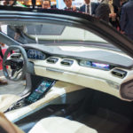 Italdesign ha esposto invece una futuristica consolle in Alcantara color beige che evidenzia i comandi della temperatura e altre funzionalità grazie a una retroilluminazione di luce bianca. Quasi come un tatuaggio sensoriale le icone disegnate si sfiorano e la retroilluminazione attivata dal contatto fornisce le informazioni al conducente, come un touch screen morbido al tatto.